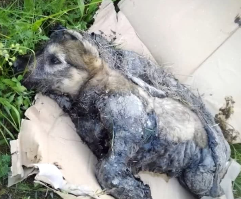 The puppy was barely conscious, limp, and unable to stand. The thick resin still clung to most of its body, sticking to the fur, irritating the skin, and releasing a strong chemical odor that made breathing difficult. Recognizing the urgency of the situation, members of a local volunteer organization called Kindness in Brest rushed to the scene. Known for their compassion and experience caring for stray animals, they arrived with supplies and a determination to save the young life before them.