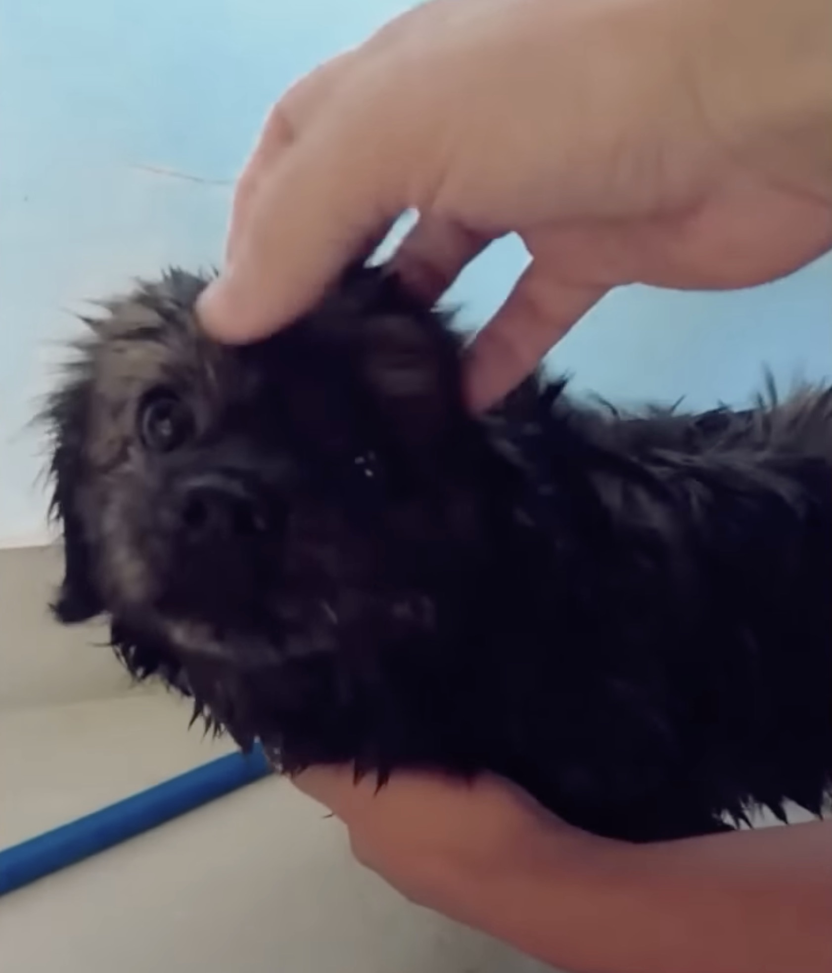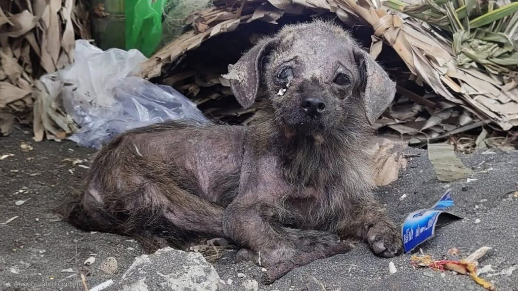 The story begins with a moment so tender, so quietly heartbreaking, that it’s hard to let go once you’ve heard it. A tiny puppy—frail, trembling, and nearly invisible—was found tucked inside a shallow, dirty hole in the corner of an old, neglected hut. She looked as though she had slowly faded into the background, the way forgotten things often do. Her little body told a silent story of long-term suffering. Her fur had thinned and clung together from untreated skin issues, and her delicate frame seemed so brittle that even a gentle breeze might have knocked her over.