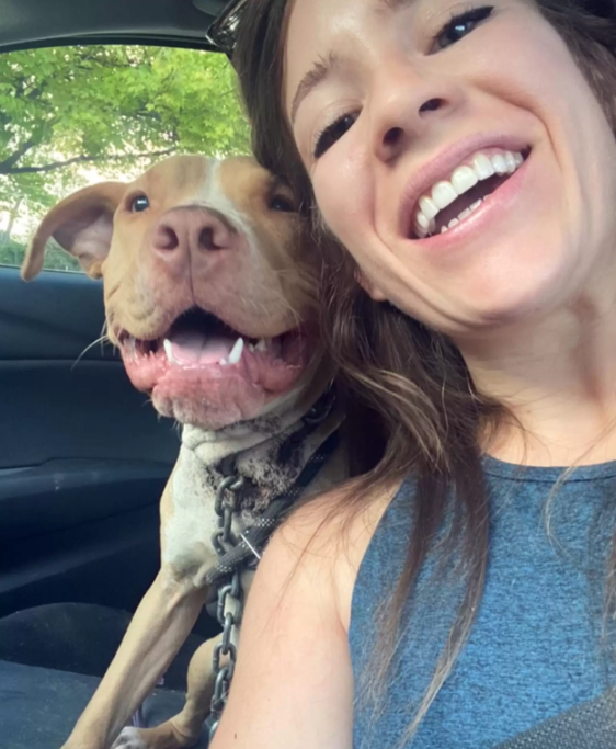 Unfortunately, the chain around his neck wasn’t just restrictive—it had begun to embed itself into his skin, causing him pain. Tiffany wasted no time and rushed him to the vet. They quickly determined that surgery was necessary to safely remove it. As they waited for the procedure, Beaker and Tiffany spent over five hours together in her car. Instead of anxiety or restlessness, those hours turned into a quiet, gentle bonding experience. She stroked his head, whispered soothing words, and offered the affection he had been denied for so long. Eventually, Beaker drifted off to sleep with his head resting on her lap—a profound sign of trust from a dog who had been abandoned only hours earlier.