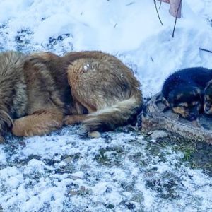 Two hungry puppies shivering in the snow, they don’t know why their mom cried