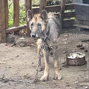 Dog Rescued After Being Left Chained Outside in Torrential Rain