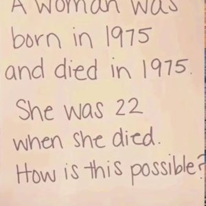 Here’s a riddle that has left countless people scratching their heads: “A woman was born in 1975 and died in 1975. She was 22 years old when she died. How is this possible?”…